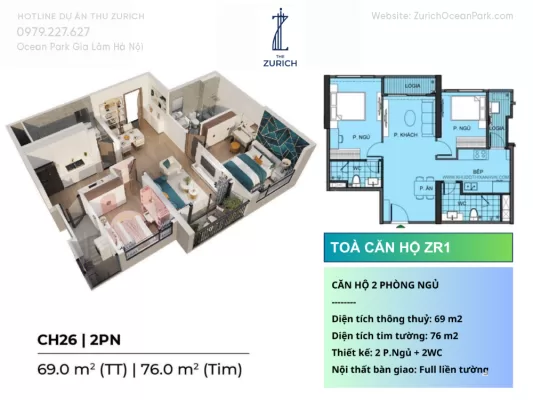 Mở bán căn hộ 2PN + 2WC The Zurich Ocean Park